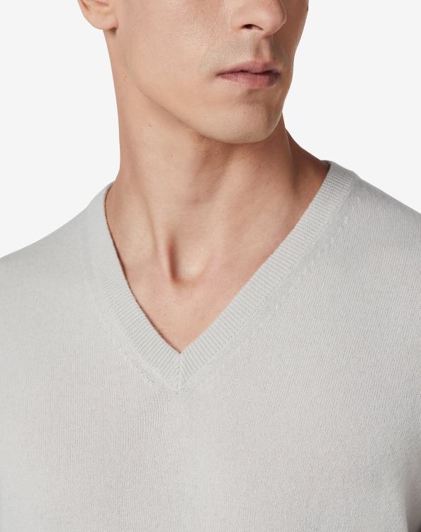 ισορροπημένα σχήματα και όγκοι χαρακτηρίζουν το στυλ της συλλογής corneliani. για τη χειμερινή συλλογή του φθινοπώρου, η μάρκα προσφέρει ένα πουλόβερ με λαιμόκοψη σε λευκό χρώμα κιμωλίας σε εξαιρετικό κασμίρ. ένα ρούχο υψηλής ποιότητας ιταλικής κατασκευής που συνδυάζει την αριστεία και την κομψότητα.