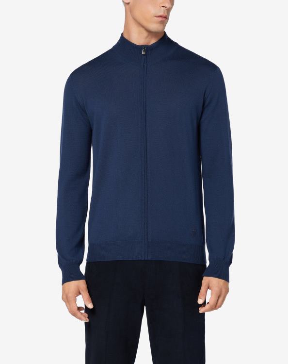 ισορροπημένα σχήματα και όγκοι χαρακτηρίζουν το στυλ της συλλογής corneliani. για τη χειμερινή κολεξιόν του φθινοπώρου, η μάρκα προτείνει ένα μακρυμάνικο πουλόβερ με φερμουάρ από καθαρό μαλλί μερίνο μπλε. Ένα ρούχο 100% κατασκευασμένο στην Ιταλία, είναι ιδανικό για μια κομψή αλλά μοντέρνα εμφάνιση.