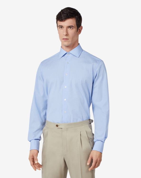 το πουκάμισο από απαλή βαμβακερή ποπλίνα έχει ένα κλασικό μοτίβο με μικρορίγες, τονίζοντας τη λαμπερή γοητεία αυτής της ύφανσης. αυτό το κομψό μακρυμάνικο πουκάμισο είναι ιδανικό για να ζωντανέψει τις επαγγελματικές εμφανίσεις χάρη στο μοτίβο και τα ευαίσθητα χρώματα του.